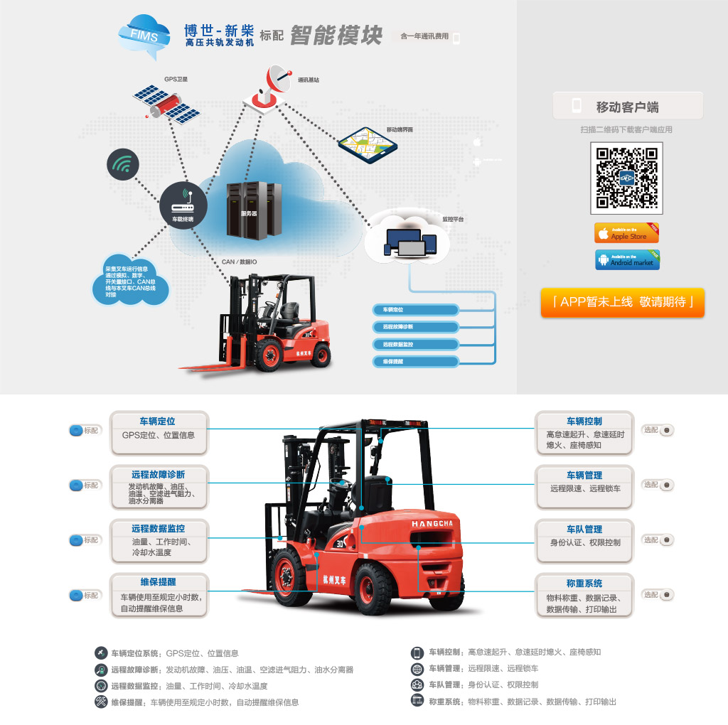 ● 云智能叉車管理系統(tǒng)是應(yīng)用先進(jìn)的物聯(lián)網(wǎng)和互聯(lián)網(wǎng)技術(shù),結(jié)合人工叉車實(shí)現(xiàn)車輛數(shù)據(jù)采集、車輛報(bào)警、車輛遠(yuǎn)程控制和診斷、車輛調(diào)度、物流跟蹤等功能,幫助用戶進(jìn)行車輛管理,智能調(diào)度和智能物流管控,提升企業(yè)設(shè)備管理和物流管理水平,叉車云智能終端可無縫對(duì)接云智能叉車管理系統(tǒng)。